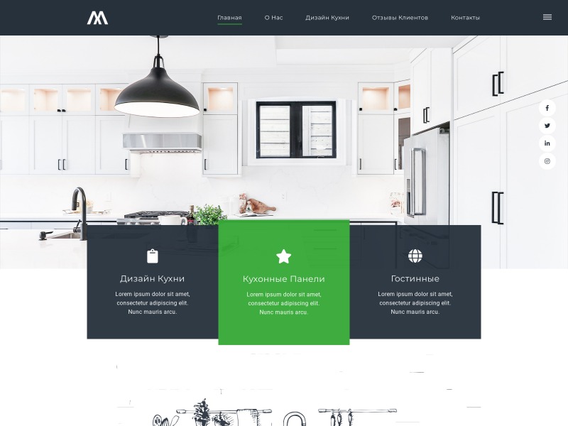 Одностраничный сайт для рекламы услуг дизайнеров мебели, индивидуальных монтажников кухонь, шкафов и другой мебели. На сайте размещены: