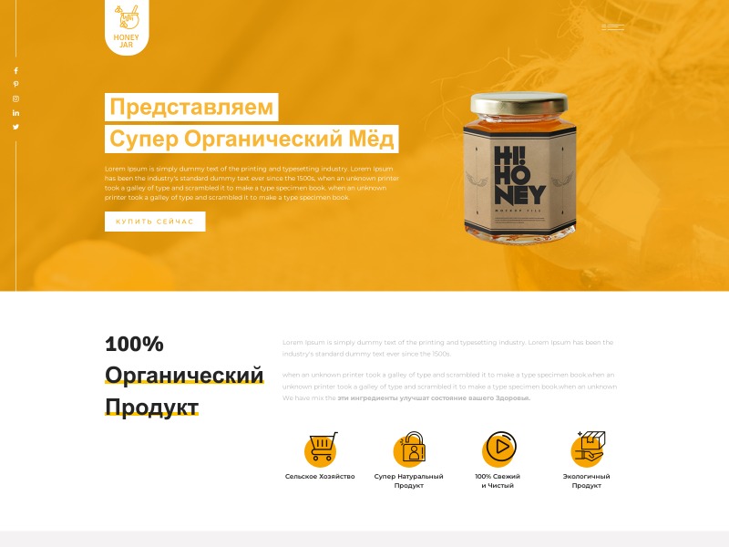 Одностраничный сайт для рекламы органической продукции, например: мёда, БАДов, витаминов и других натуральный продуктов. На сайте размещены: