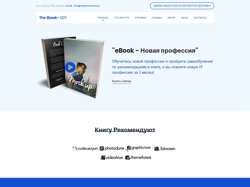 Одностраничный сайт для рекламы книг различных форматов: от печатных изданий до электронных книг. На сайте размещены: