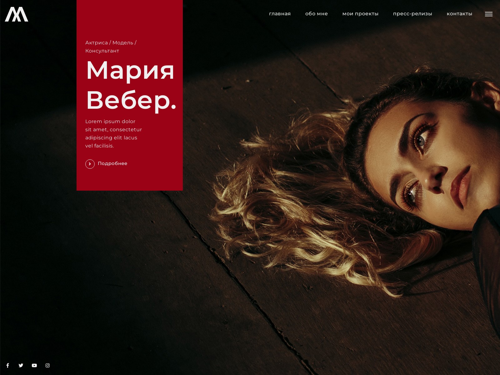 Одностраничный сайт для продвижения Личного Бренда: актриса, модель, инфобизнес, сайт продажи вебинаров. На сайте размещены: